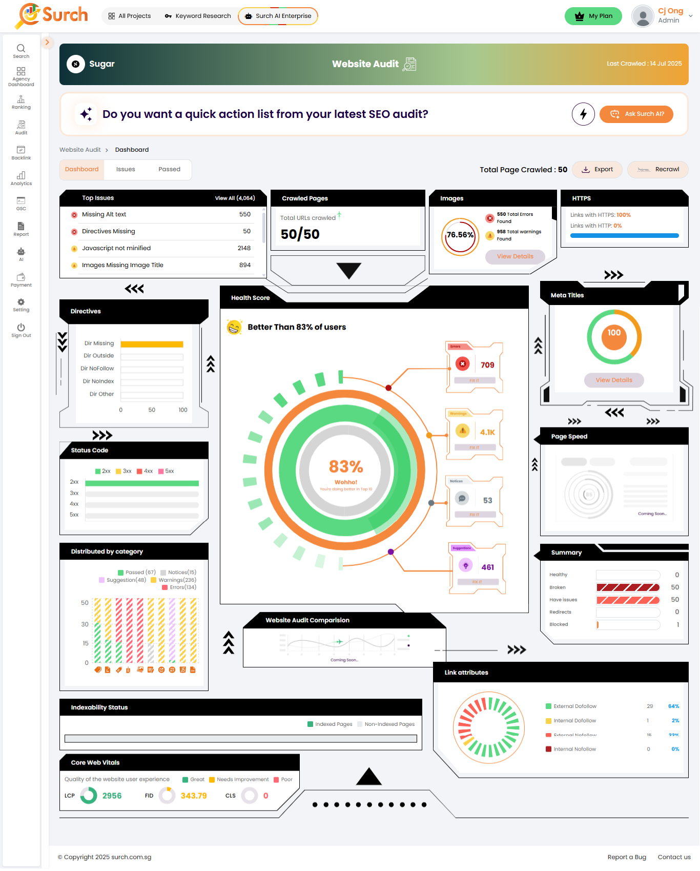 How does the Surch tool website audit
